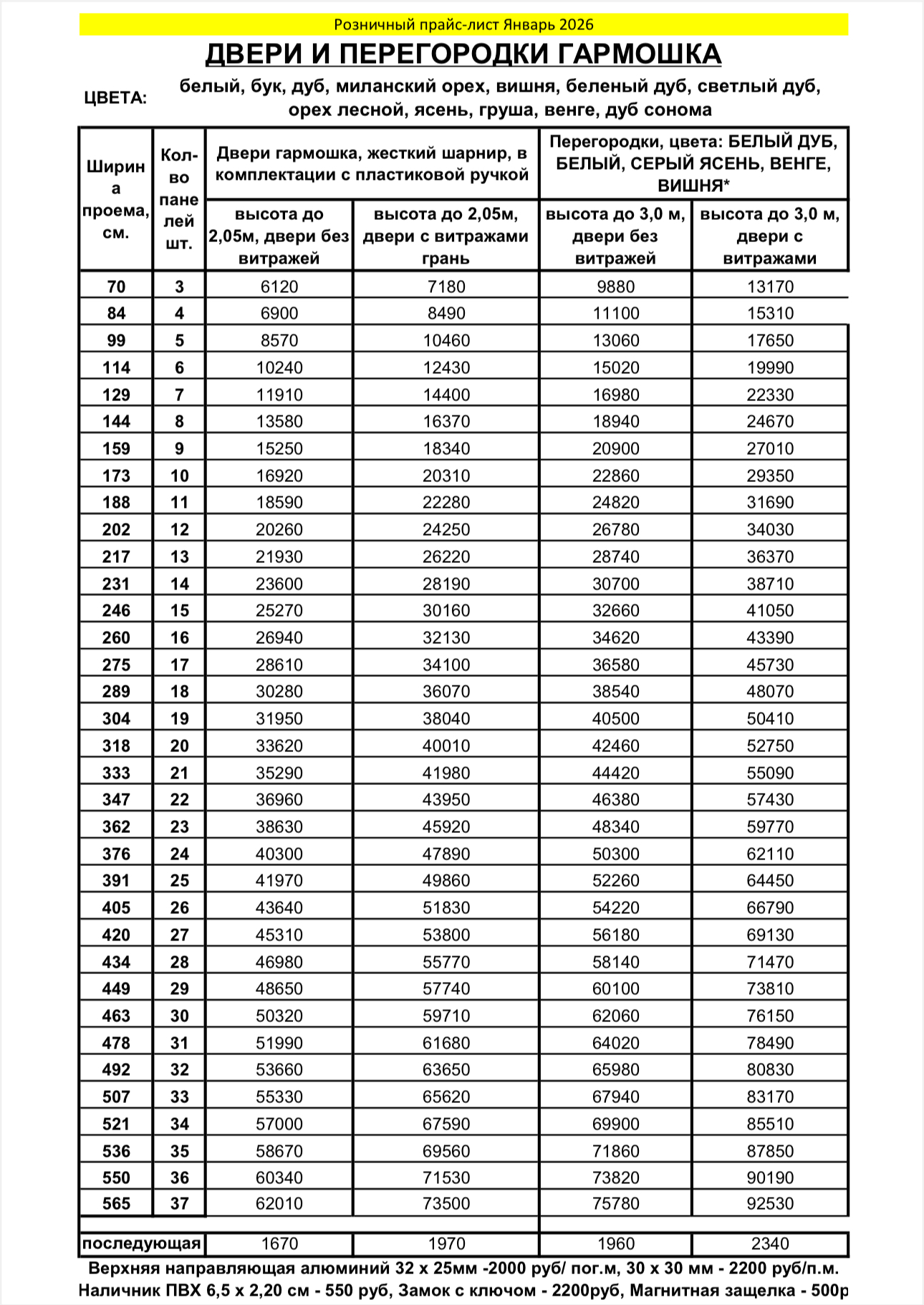 Складные перегородки гармошка и все другое оборудование изготавливается в течение 1-2 дней, причем компания осуществляет полный спектр услуг, включая замеры, доставку и установку. При желании возможен самовывоз.